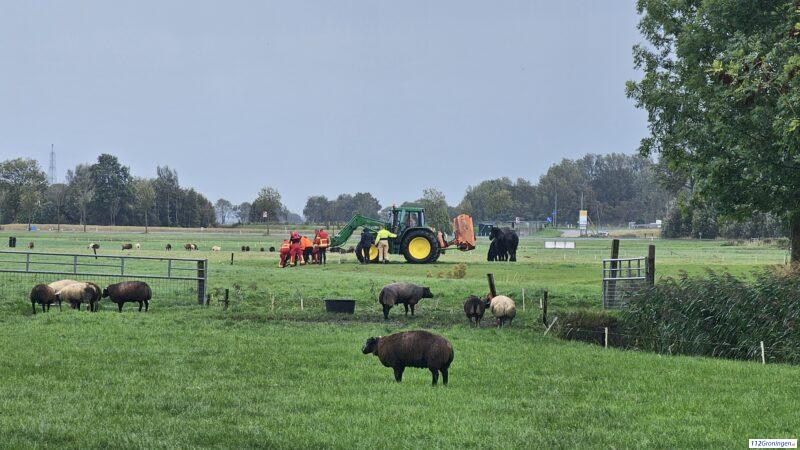 Groningen – In een weiland aan de Noorddijkerweg in Groningen is zaterdagmiddag een paard te