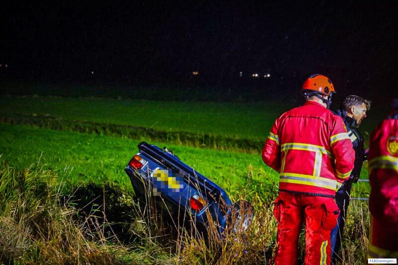 Auto belandt op de kop in sloot langs Hogeweg in Den Horn