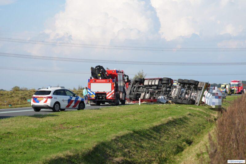 Zeer ernstig ongeval op de A7 bij Beerta, vrouw(72) overleden, bestuurder(50) gewond (Video)