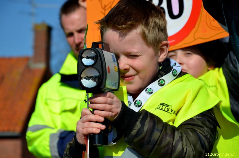 Leerlingen meten snelheid van auto’s tijdens Lasergunmeting in Wagenborgen