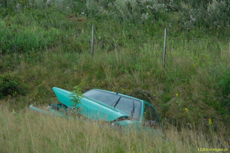 Op de A7 bij Marum is maandagmiddag een personenauto te water geraakt. De auto raakte