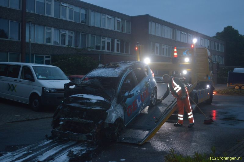 Lesauto in vlammen op