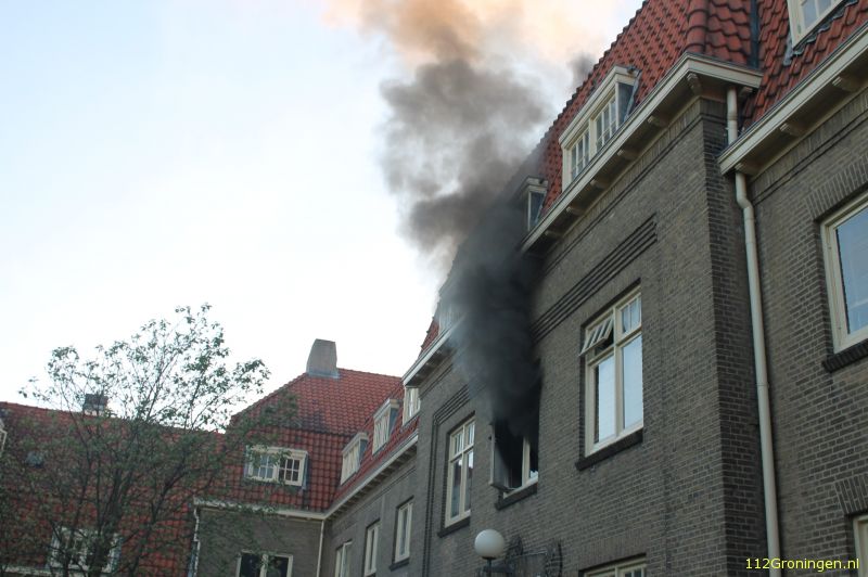 Korte brand zorgt voor forse schade in studentenwoning Groningen (Video)