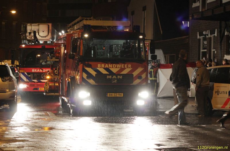 Brandweerlieden hebben donderdagavond om 22:05 uur aan de Willem Barentzstraat in Groningen een vrouw uit