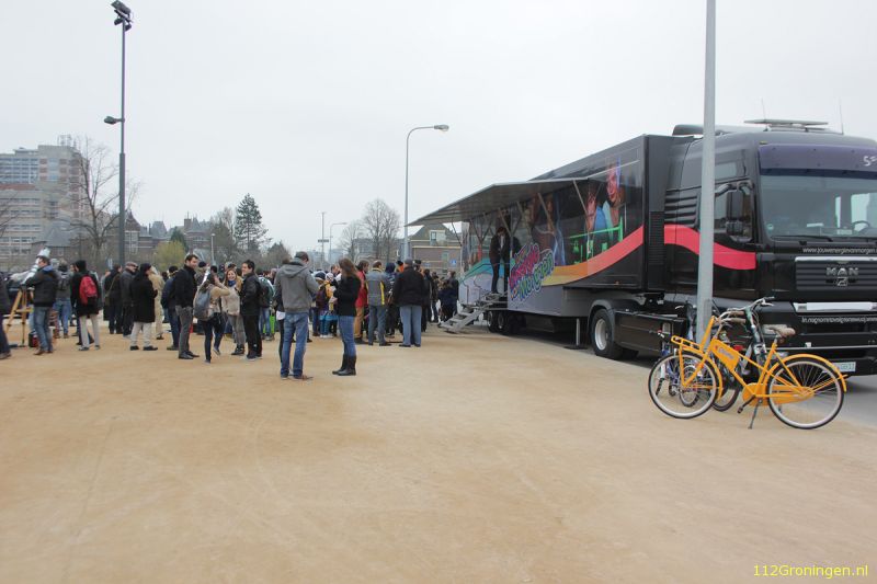 Zo'n tweehonderd mensen keken vrijdagochtend bij het Infoversum en op het Cibogaterrein in Groningen naar
