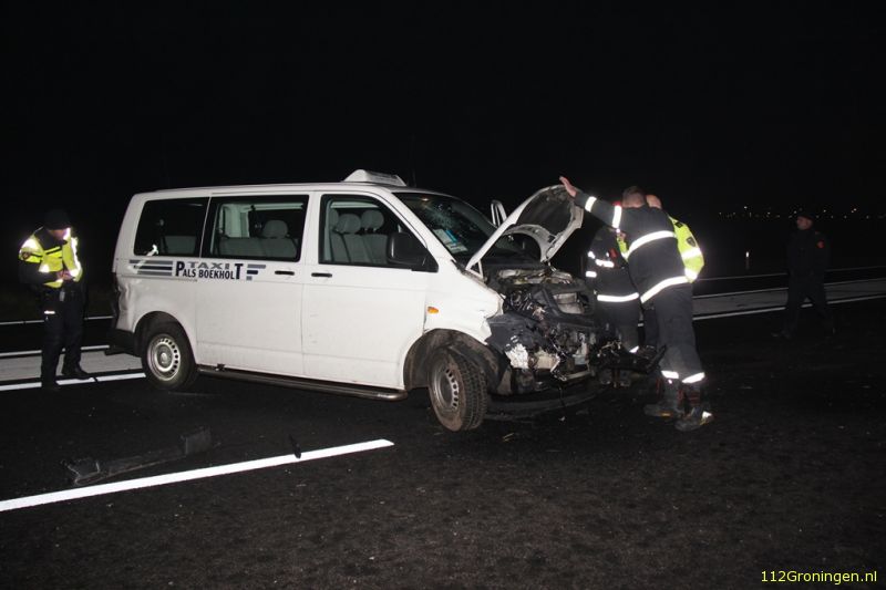 Donderdagavond is een taxi busje de vangrail ingereden op de N33 ter hoogte van Wildervank.