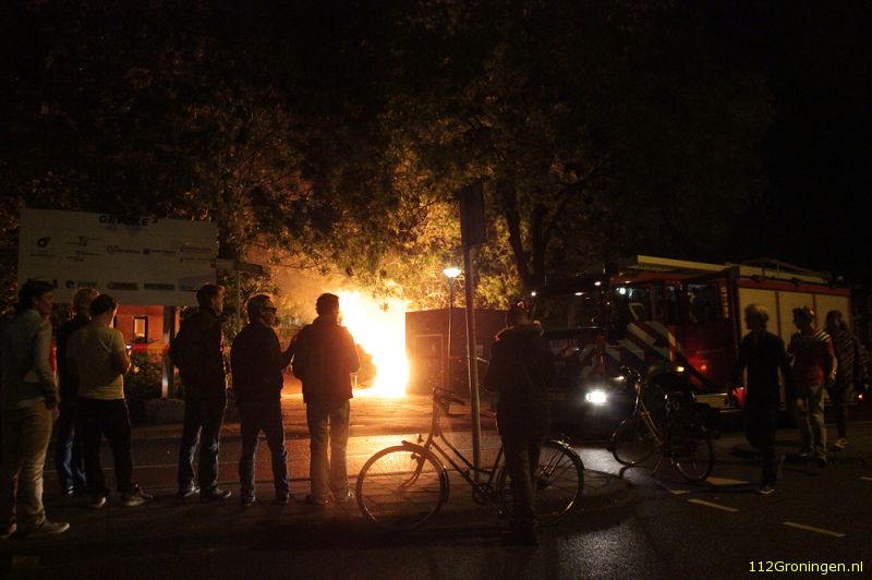 Donderdagavond een prio 2 melding van een container in de brand gevuld met bouwafval aan
