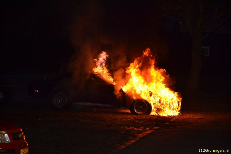 Een autobrand aan de Eikenstraat in Leeuwarden, deze auto is in brand gestoken.