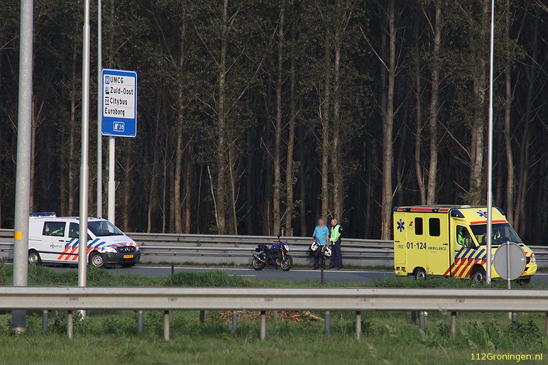 De bestuurder van een motor is zaterdagmiddag met de schrik vrijgekomen toen hij in de