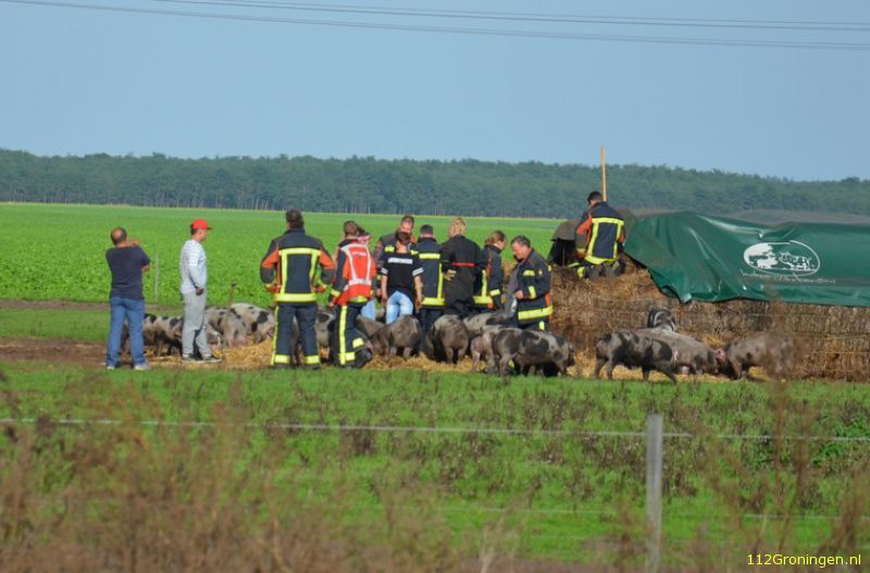 Zondagmiddag kreeg de brandweer van Ter Apel rond 16:05 uur een melding van varkens in