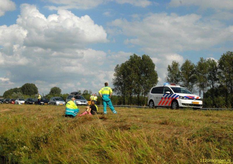 Bij een éénzijdige ongeval op de A7 tussen Groningen en Hoogezand is maandagmiddag één persoon