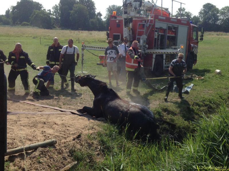 Brandweer, politie en omstanders hebben vrijdagmiddag langs de Opwierderweg in Appingedam met veel moeite een