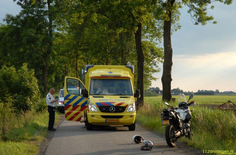Bij een eenzijdig ongeval zijn vanavond een motorrijder en zijn duopassagier gewond geraakt.