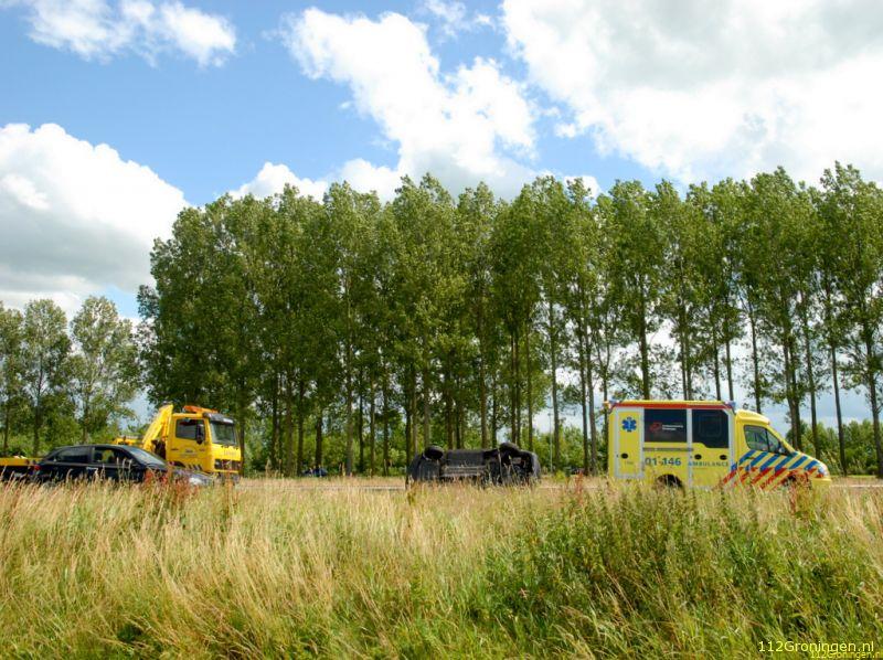 Bij een ongeval op de Provincialeweg onder de viaduct van de A7 in Kolham is