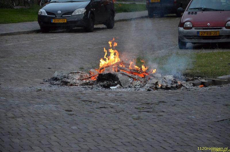 In een steeg tussen het Deliplein en Padangstraat in de stad Groningen heeft zondagavond brand
