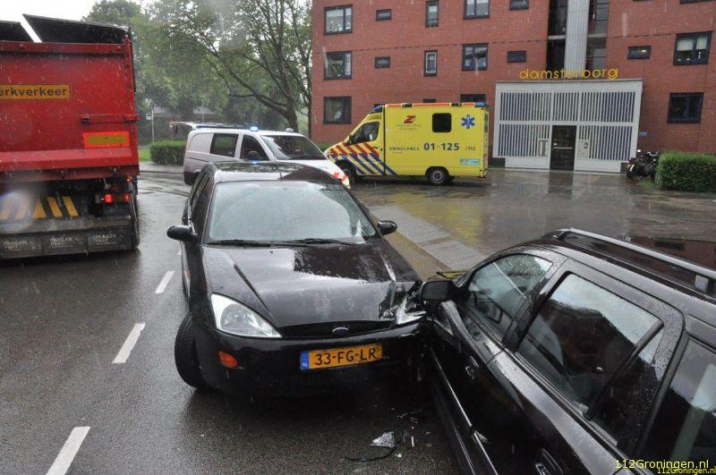 Bij een ongeval op de rotonde bij de Korreweg in Groningen is zaterdag rond het