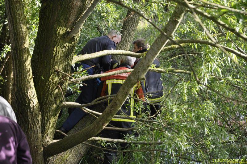 Om 17:50 uur donderdagmiddag zat een kind(8) vast in een boom boven het water bij