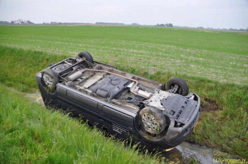 Op de Scheepswerfstraat in Stadskanaal is donderdagavond een auto op zijn zijkant beland.