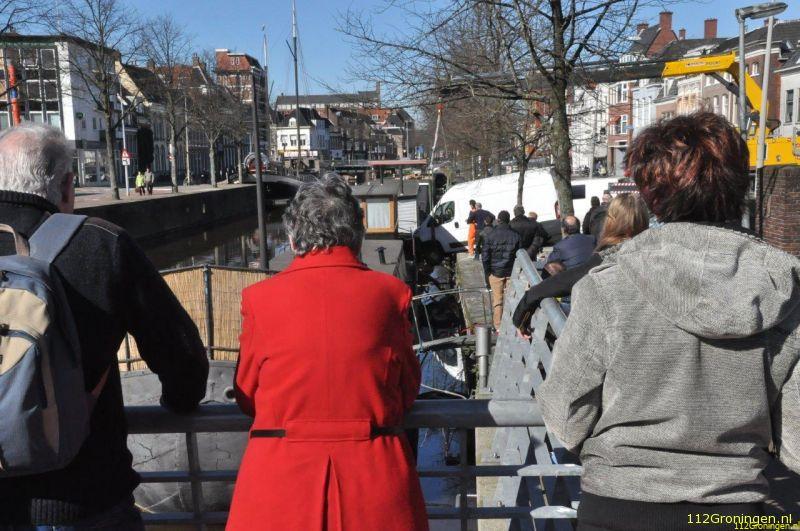 Op het Schuitendiep in Groningen is woensdagmiddag rond 12:30 uur een bestelbusje tussen wal en