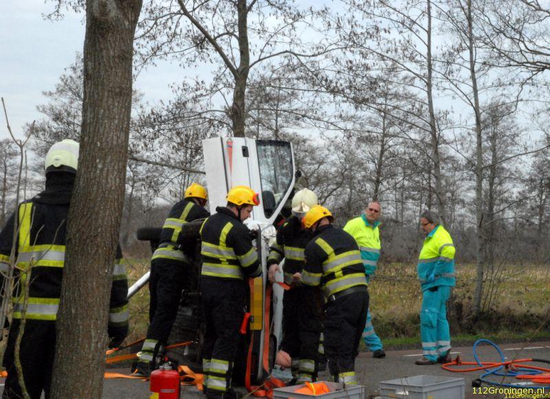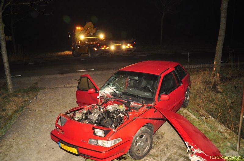 Een 28-jarige automobilist uit Winschoten raakte woensdagavond ernstig gewond toen hij tegen zeven uur op