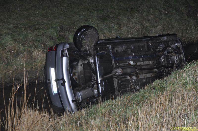 Zaterdagavond is op de D.H. Vinkersweg in het Groningse Westerlee een auto tijdens het rijden