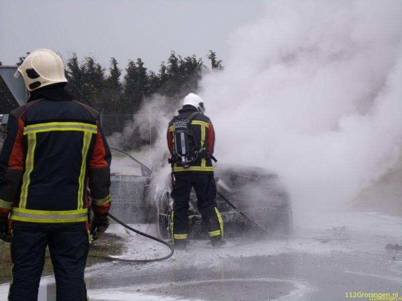 Een testrit van een auto eindigde dinsdag rond het middaguur in een vuurzee.