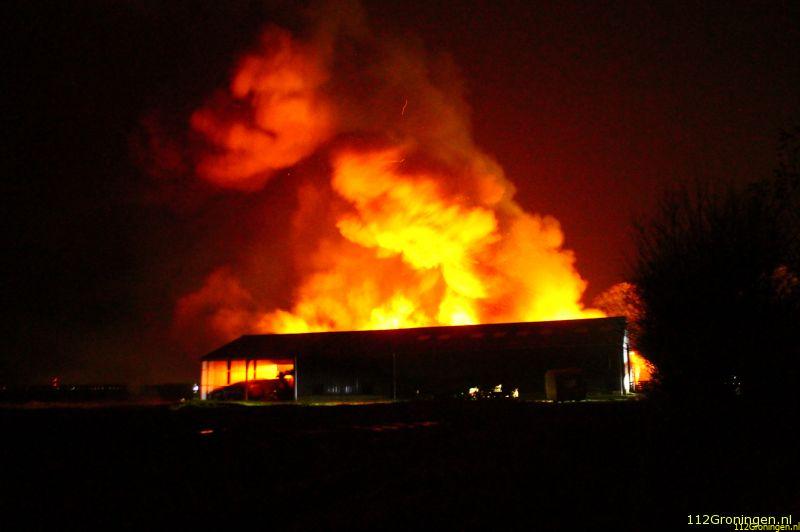 In Borgercompagnie is maandagavond een loods volledig verwoest door brand. Ook de trekkers die in