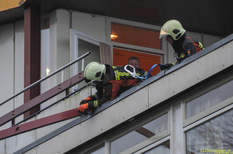 Brandweer Groningen werd maandagavond opgeroepen voor een sterke gaslucht in de gang van een woning