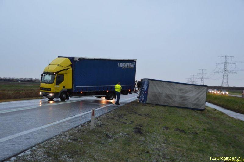 Vrachtauto gekanteld door harde wind N366 (Video)