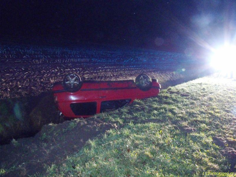 Op de N374 bij Nieuw Buinen is woensdagavond een auto van de weg geraakt en