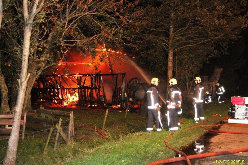 In de nacht van maandag op dinsdag is in Nieuwe Pekela een boerenschuur volledig in