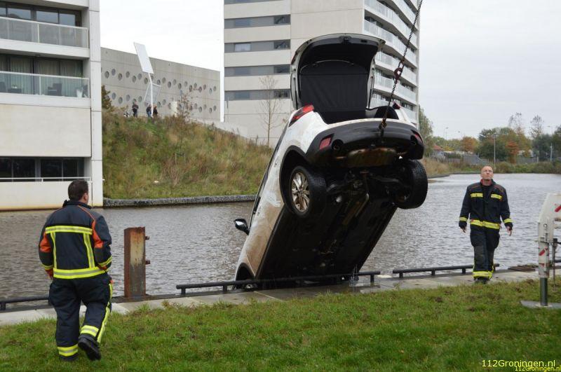 Vrijdagmiddag is in Groningen een auto het Oude Winschoterdiep ingerold.