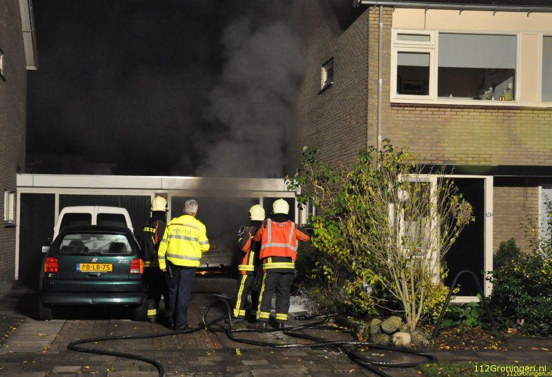 Net na 19 uur werd de Leekster brandweer opgeroepen voor een garagebrand aan de G.