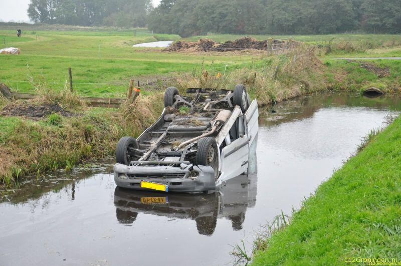 Op de Stadsweg tussen Appingedam en Wirdum heeft een automobilist donderdagavond een nat pak gehaald.