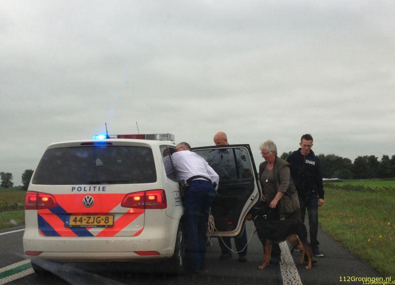 Maandagavond heeft een hond voor wat commotie gezorgd op de Eemshavenweg tussen de afslag Uithuizen