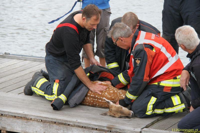 Zaterdagmorgen moest de brandweer in actie komen voor een dier te water in het Oldambtmeer.