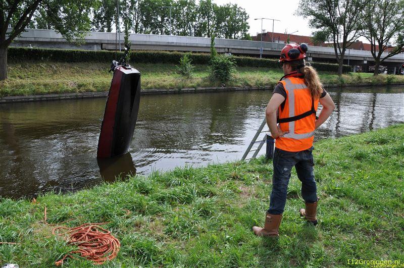 Maandagmorgen heeft DTS i.s.m Poort Hoogkerk een boot van de bodem gehaald uit het Hoornsediep