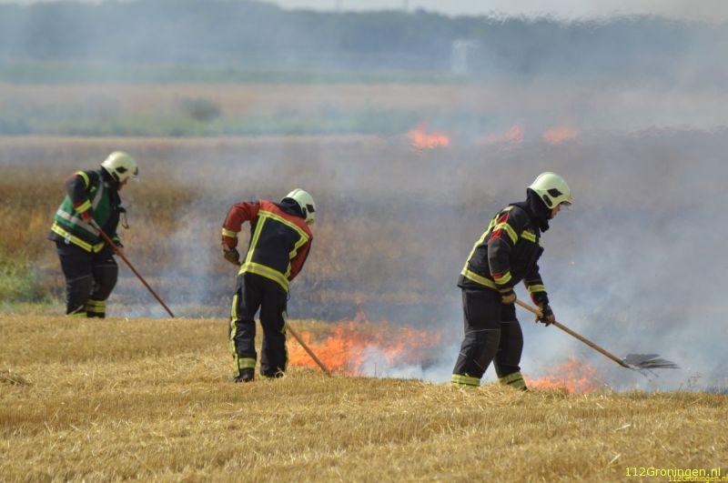Aan het Noorderdiep in Valthermond is Maandagmiddag een weiland met gerst in vlammen op gegaan.