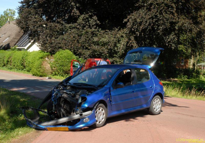 Bij een ongeval op de Meeuwerderweg in Groningen ontstond vanmiddag forse schade aan twee auto's.