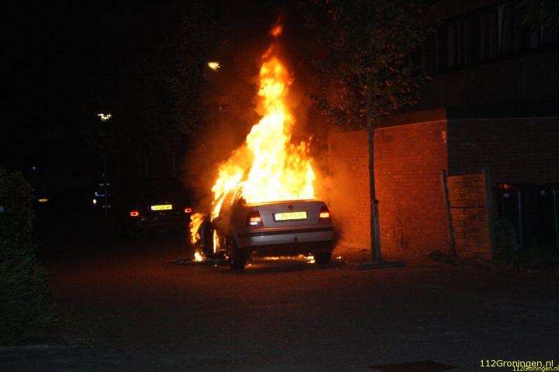 Op de N33 bij afslag Meeden heeft een auto korte tijd in brand gestaan.