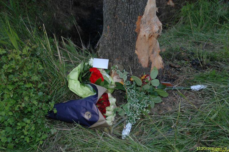 Bloemen gelegd bij boom N361 bij Wehe den Hoorn