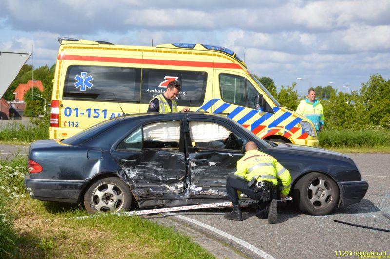 Na een ongeval op de rotonde bij de Korreweg in Groningen is een automobilist er