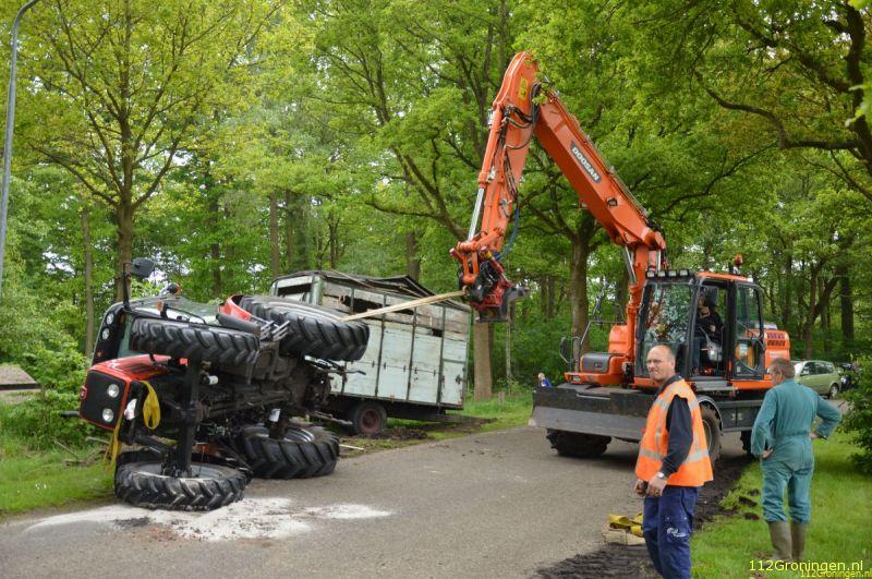 Een tractor en veewagen zijn donderdagmiddag aan de Beetserweg in Sellingen omgeslagen.