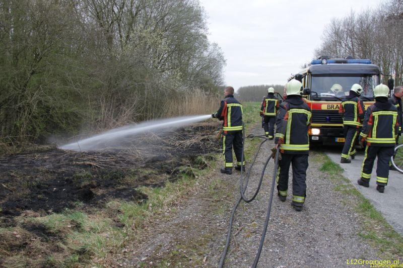 Bij een natuurband aan de Kromme Elleboog in Oostwold is ongeveer 15 meter riet afgebrand.