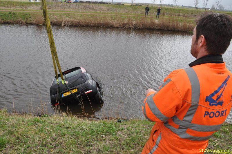 Woensdagmiddag om 13:50 uur is op het Hoendiep nabij De Poffert een auto te water