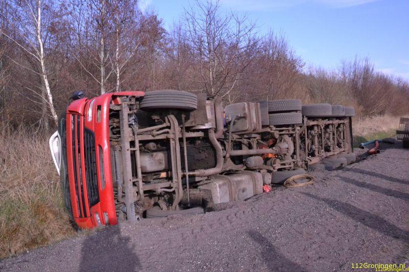 Woensdag in de namiddag is aan de Hoorn in Wedde een vrachtwagen gekanteld.
