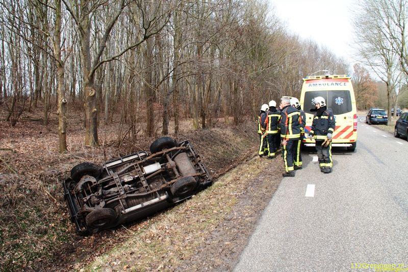 Auto in de sloot bij Midwolda