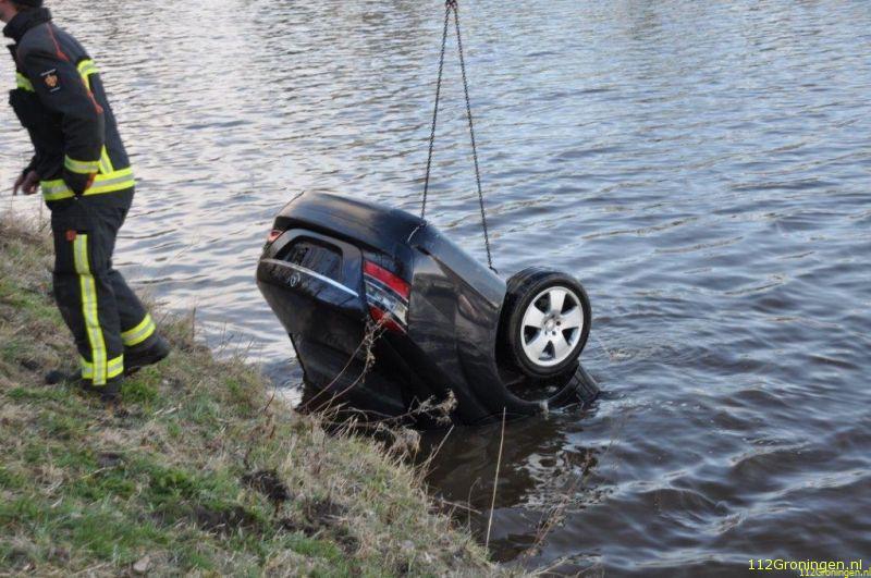 Donderdagmiddag is de bestuurster van dit voertuig met de schrik en een nat pak vrij