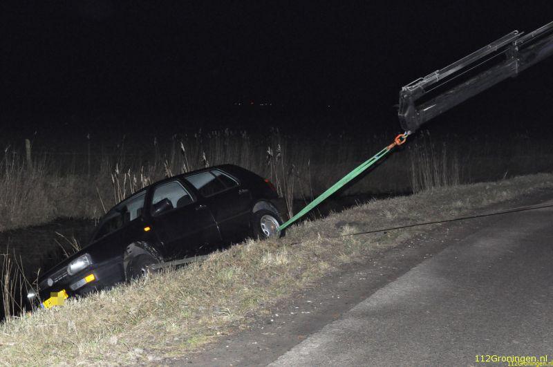 Dinsdagavond is er op de Warffumerweg in Onderdendam een auto naast de weg gekomen, hoe