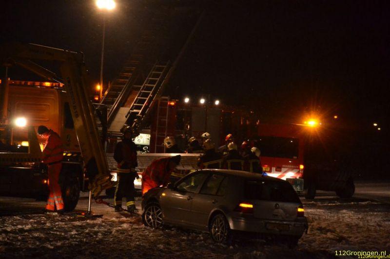 Auto gekanteld in Zuidbroek, bestuurder gewond (Video)